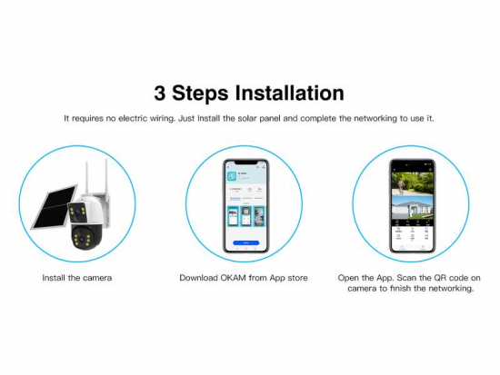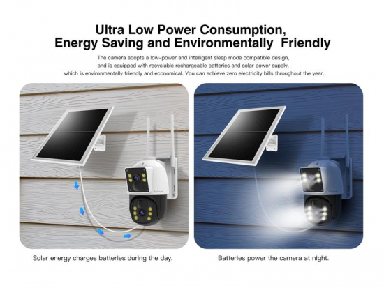 Techincal specification:Camera IP rating: IP66Camera viewing angle: 100°Fixed 100°Pan-Tilt-Zoom 305°Connectivity: 4GDecibels: 38dBDepth (mm): 210Frame rate (FPS): 15Height (mm): 206Motion sensor: Humanoid DetectionNight vision: Infrared LED’s for night visionPlug Type: SolarResolution: Full HD (1920 x 1080)Speaker System: 8Ω1WTemperature range: -10°C to +50°CVolts: 220-240VWidth (mm): 115Zoom: Digital Zoom - Product groups