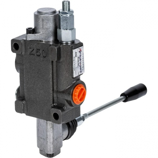 The valve package is equipped with a pressure limiter and check valve. The valve can be series-connected (N-port BSP 1/2").