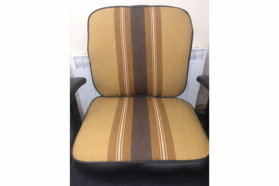 - Striped fabric and leatherette cover for seat base and seat back