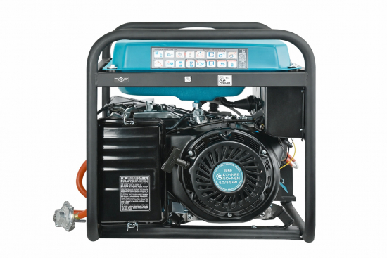 The package includes everything needed to use LPG as fuel: a zero-pressure regulator that supplies gas during operation, prevents leaks and shuts off gas when the generator is switched off. A 1.5 m hose provides convenient cylinder connection. The hose includes an additional regulator mounted on the cylinder (DIN 477) to increase safety and reduce pressure. Simply connect the generator to the cylinder and start the engine.