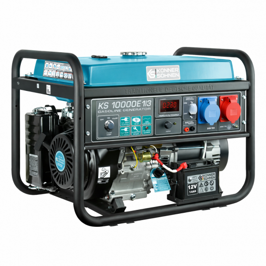 Könner & Söhnen engines meet all global and European quality standards, including the latest EURO V emission requirements. This is confirmed by European quality certificates. Each engine and generator has its own individual serial number, allowing control of production and service quality. The engines feature easy starting and low vibration. The KS 10000 series is equipped with a reliable single-cylinder 18 hp petrol engine.